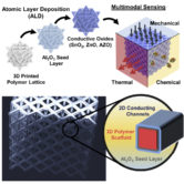 Research seed grants from the New Hampshire EPSCoR Track-1 project continue to sprout interesting biosensing technology results. Dartmouth graduate student Julia E. Huddy and her advisor, Assistant Professor of Engineering William Scheideler just had their paper published, “Transforming 3D-printed mesostructures into multimodal sensors with nanoscale conductive metal oxides” in Cell Reports Physical Science, available now through open access.
