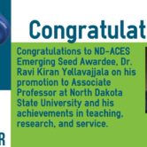 North Dakota EPSCoR congratulates New Discoveries in the Advanced Interface of Computation, Engineering, and Science (ND-ACES) Emerging Seed Awardee, Dr. Ravi Kiran Yellavajjala on his recent promotion to Associate Professor at ND State University and his achievements in teaching, research and service.